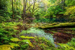 - 代表的なスポットは青池(奇跡のブルー)、沸壺の池(湧水)、ブナ林散策路