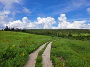 アン「それ、八幡平の魅力のひとつ。ミズバショウとかワタスゲが咲く季節なのよ。標高1,600メートルの世界で花が見られるなんて貴重よね。」