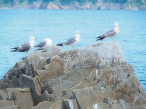• 遊覧船やカヤックで間近に楽しめる。ウミネコやカモメとの出会いも人気。