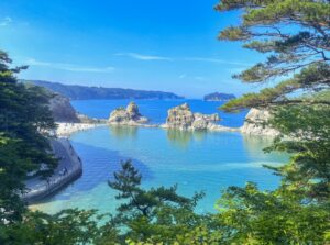 アン「浄土ヶ浜は三陸海岸特有のリアス式海岸の一部。海の透明度が高くて、夏は海水浴場としても人気。遠浅で波が穏やかだから子供連れにも安心よ。」