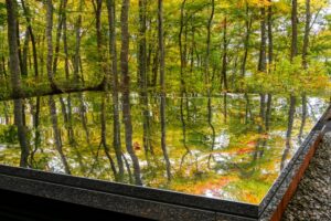 見えない空気を“鏡のステージで可視化”する独創的な設計が特徴。 - 昼は“空・雲・森”が鏡に映り込む幻想的な風景を楽しめる