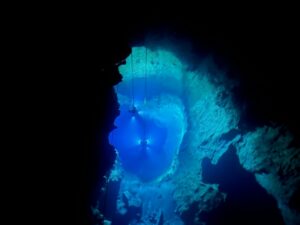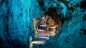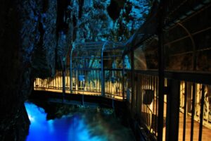 - 地底湖は透明度が高く、ドラゴンブルーと呼ばれる幻想的な青さを誇る。