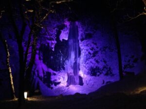 水が落ちる途中で凍結して、巨大な氷の柱になるの。」