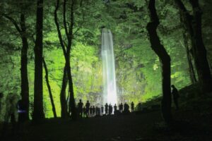 ライトに照らされた水の動きだけが強調されて、滝がより立体的に見える。」